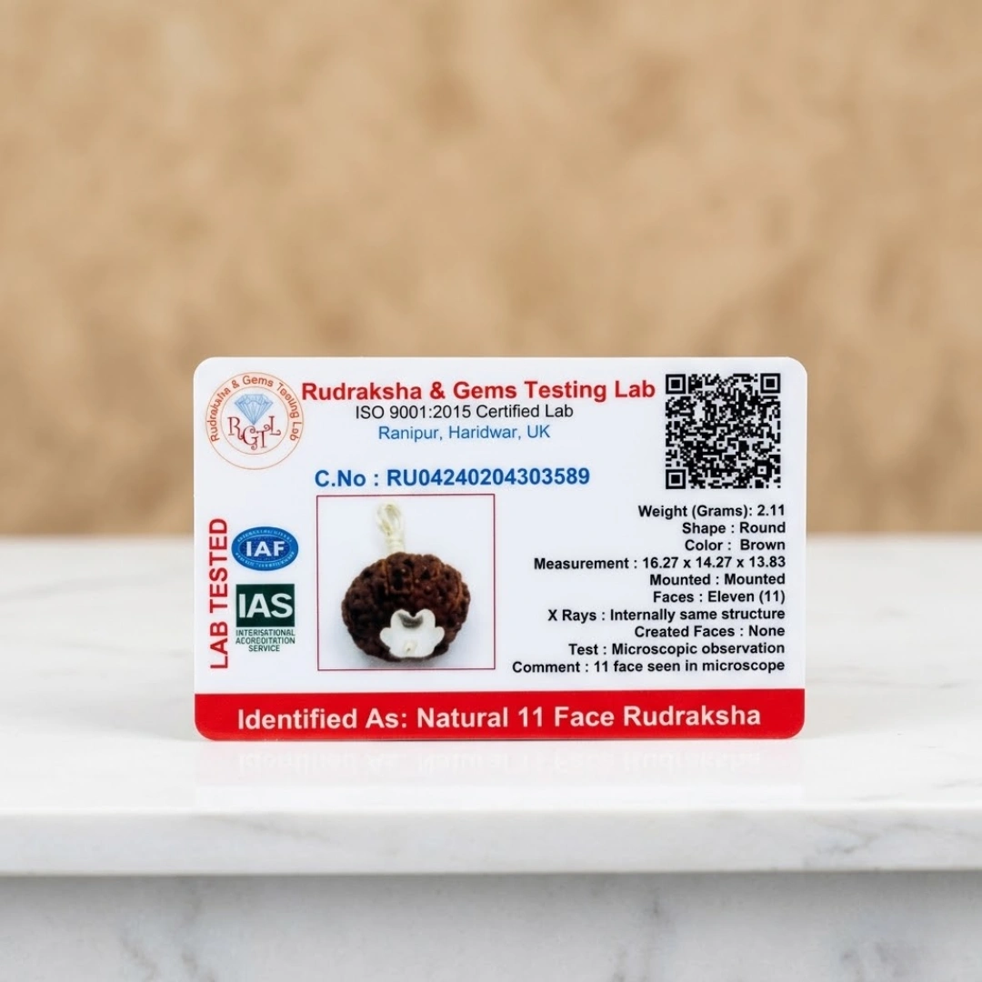 The 11 Mukhi Rudraksha is also called the Ekadash Rudra bead — carrying the energy of the eleven forms of Lord Shiva known as the Rudras.
