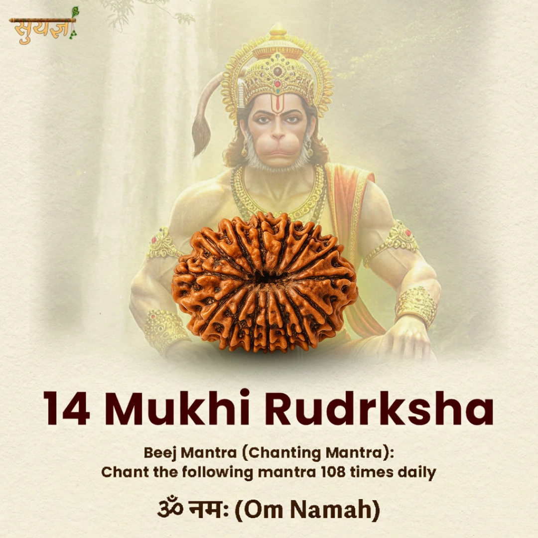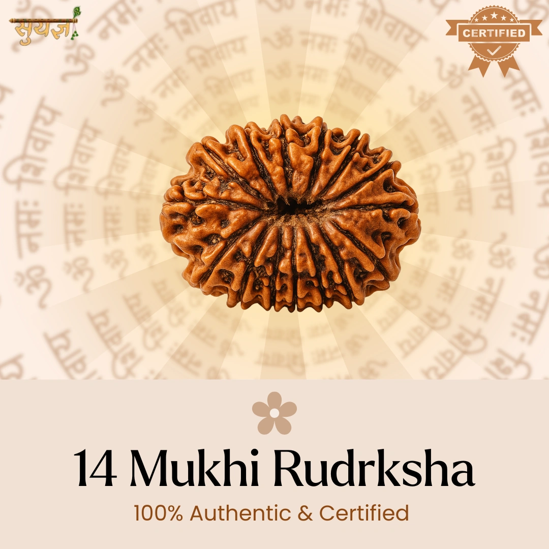 14 Mukhi Rudraksha ko hum Suyagya mein "The Third Eye Bead" maante hain. Yeh ek rare aur powerful Rudraksha hai jo directly Shiv ji ki teesri aankh aur Hanuman ji ke divya netra se connected maana jaata hai. Iska kaam hai aapki inner sight ko activate karna – taaki aap wo dekh sako jo surface pe nahi dikhta.