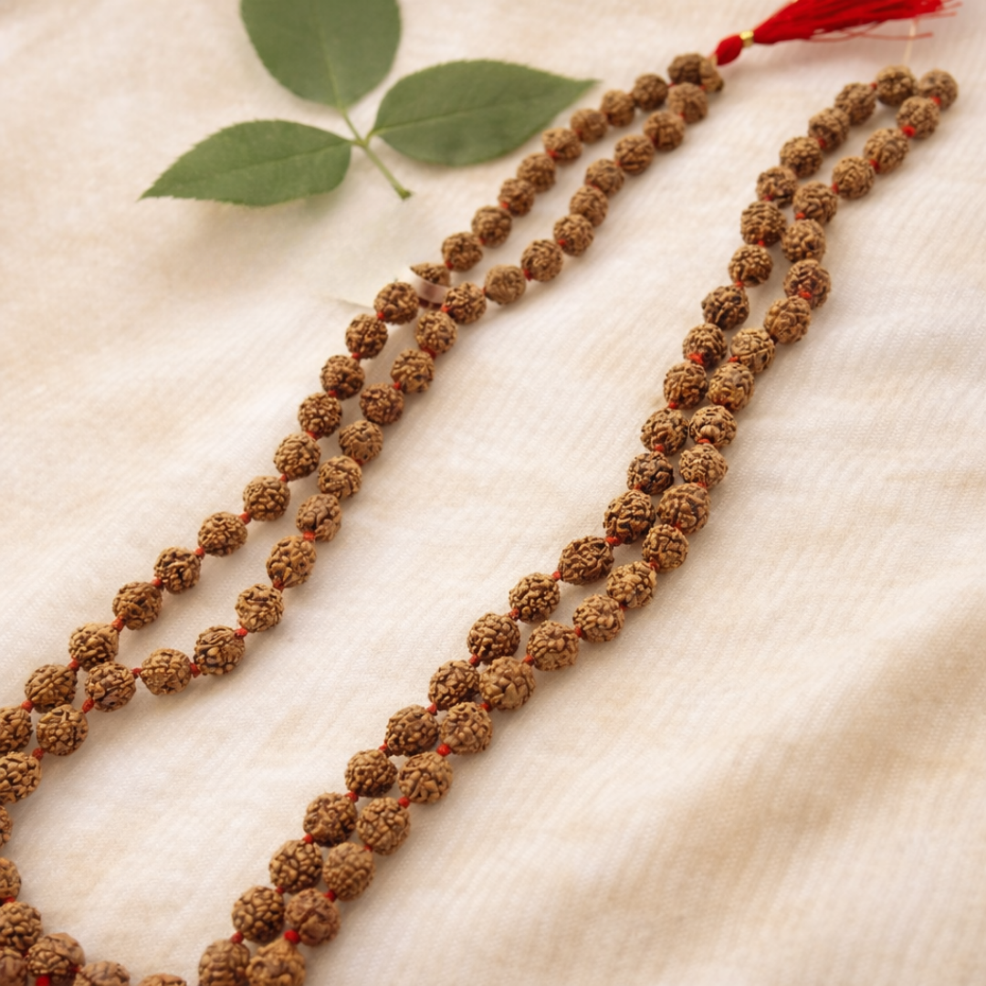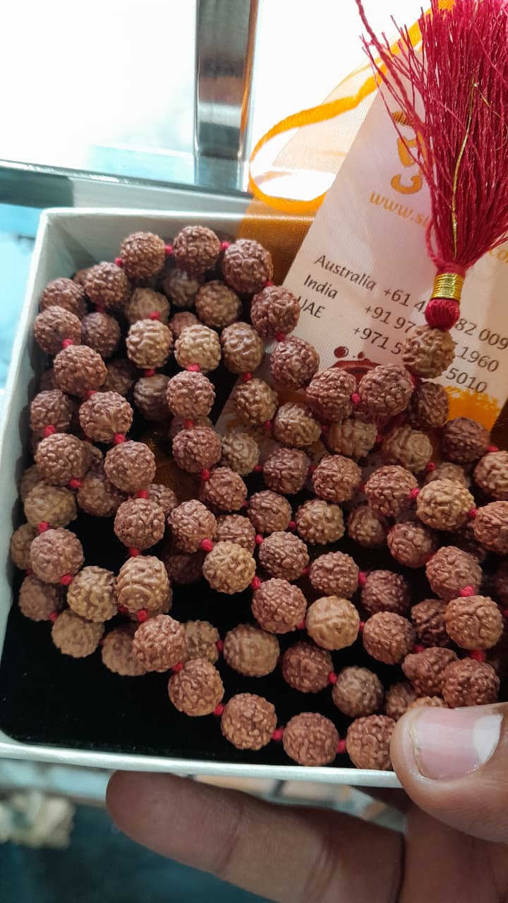 - Mukhi counting – har bead pe 5 lines clearly visible