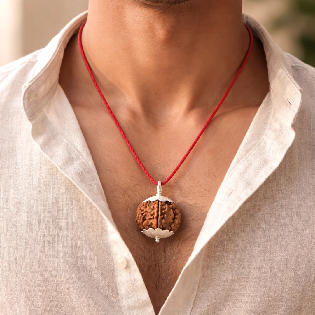 Six faces — and in classical texts, each face of Kartikeya represents a different quality: knowledge, willpower, courage, creativity, love, and stability. Wearing the 6 Mukhi means wearing all six simultaneously. A complete inner upgrade.