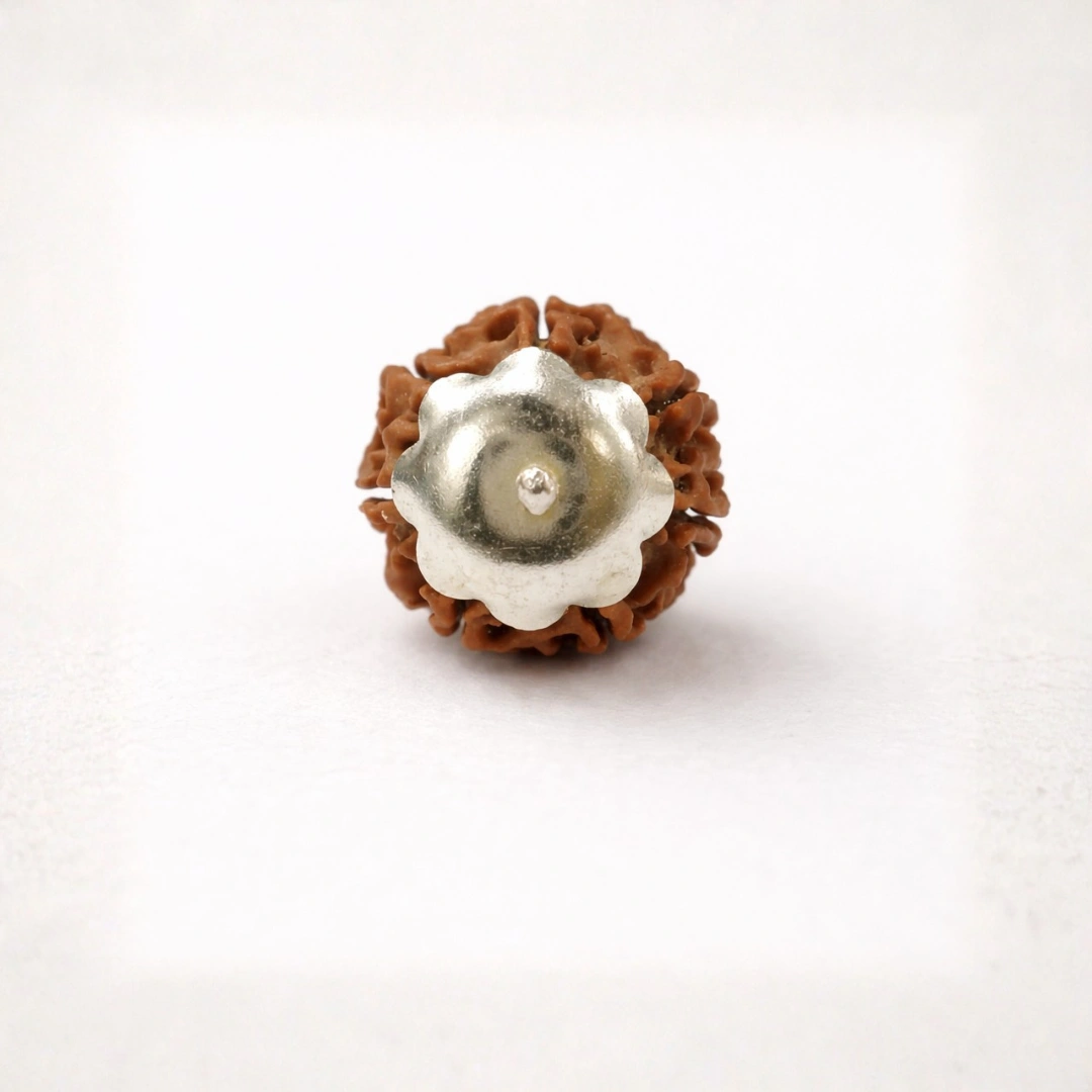 Silver is associated with Moon energy — Chandra. The Moon governs emotions, inner stability, and the quality of receptivity. When the Saturn-Mahalakshmi energy of the 7 Mukhi is held in a silver cap, the Moon's emotional calming quality is added. Saturn builds discipline. Moon sustains the emotional foundation that makes that discipline possible without burning out.