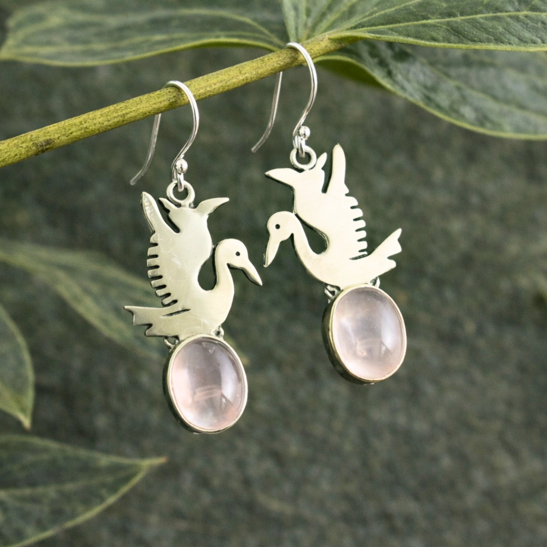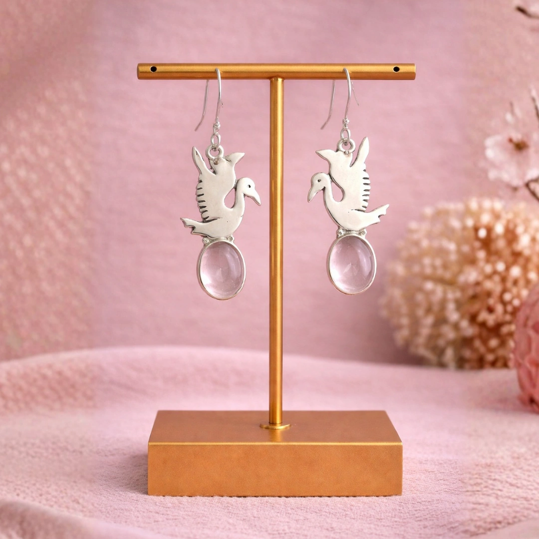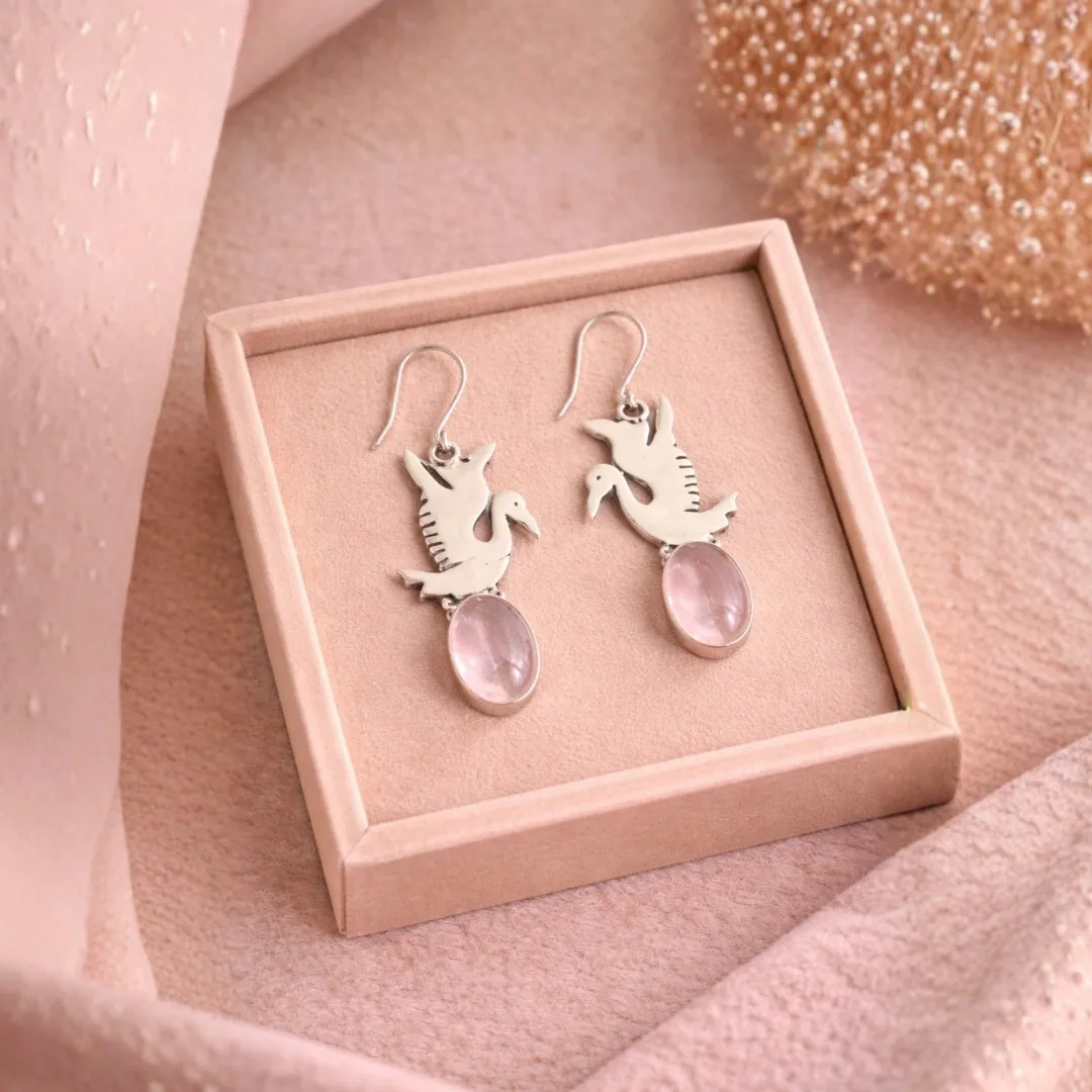 Yeh 925 Silver Natural Rose Quartz Duck Earrings ready hain tujhe love + cuteness dono dene ke liye. Self-love chahiye? Joy chahiye? Unique design chahiye? Yeh ducks deliver karti hain sab with a smile!