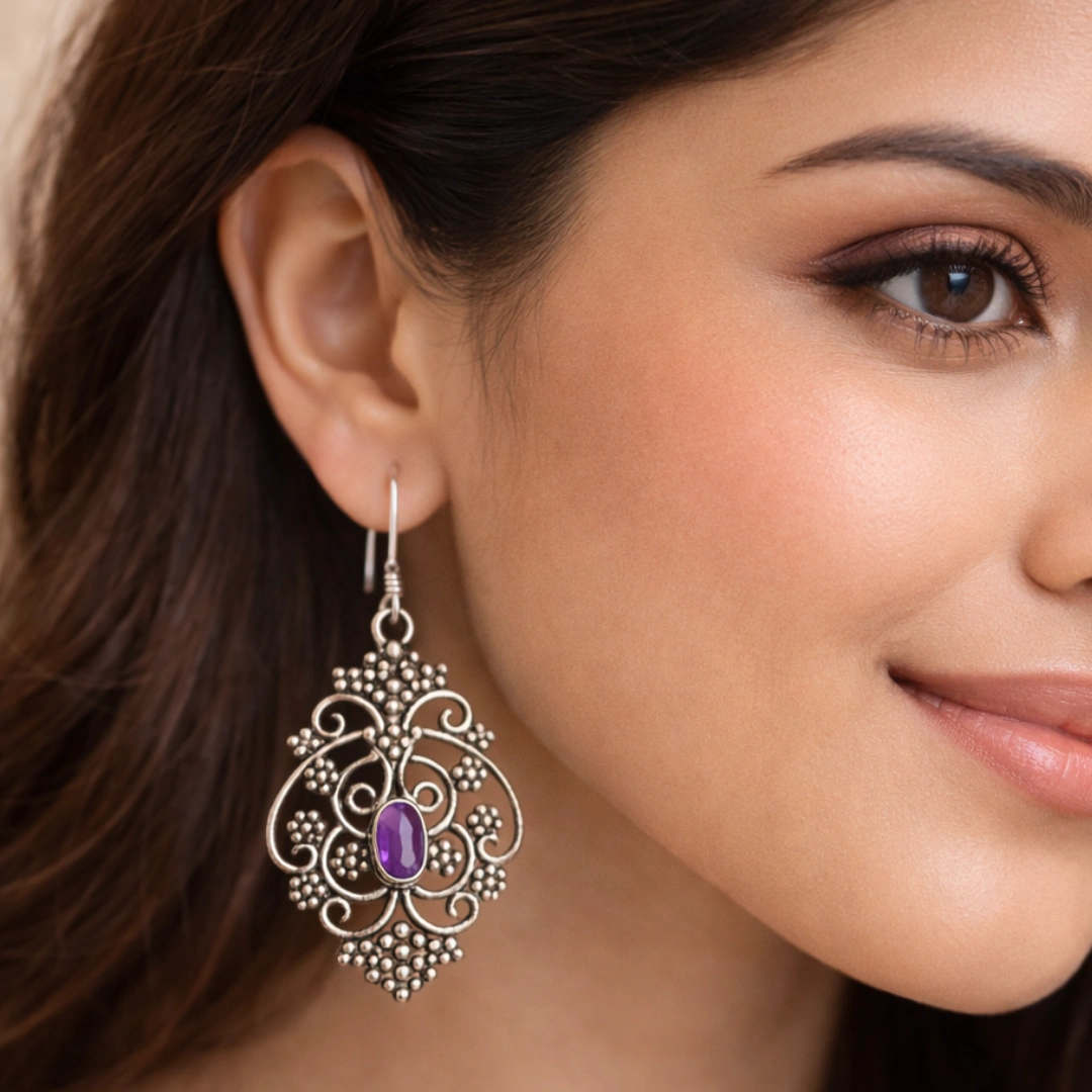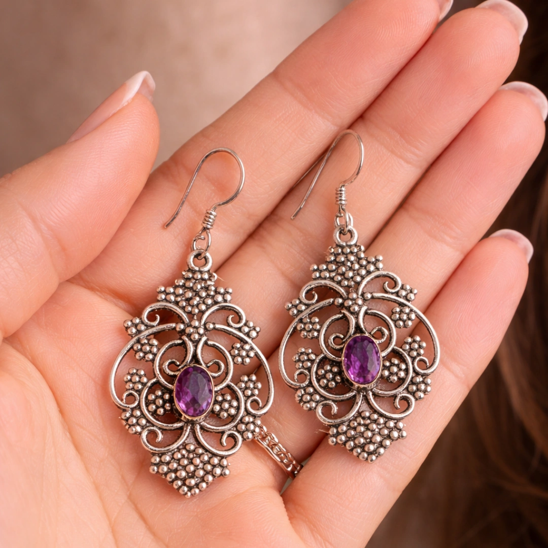 Elevate your style with the enchanting beauty of our Natural Amethyst Dangle Drop Earrings, expertly crafted in 925 sterling silver. These elegant earrings showcase genuine amethyst gemstones – the vibrant birthstone of February, symbolizing peace, clarity, and inner strength.