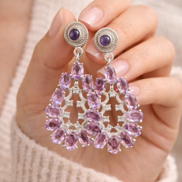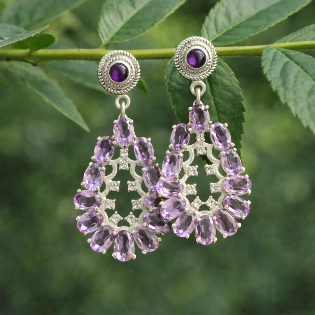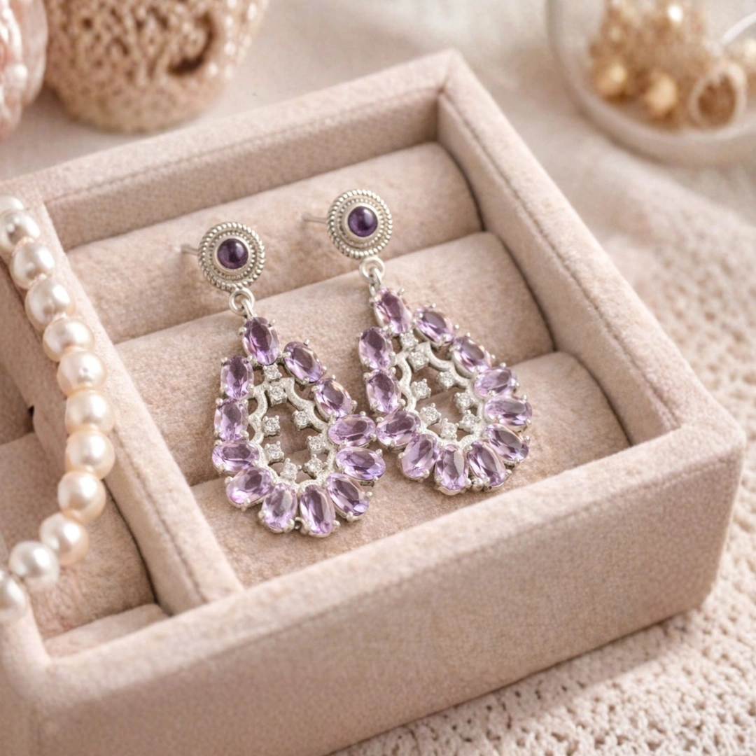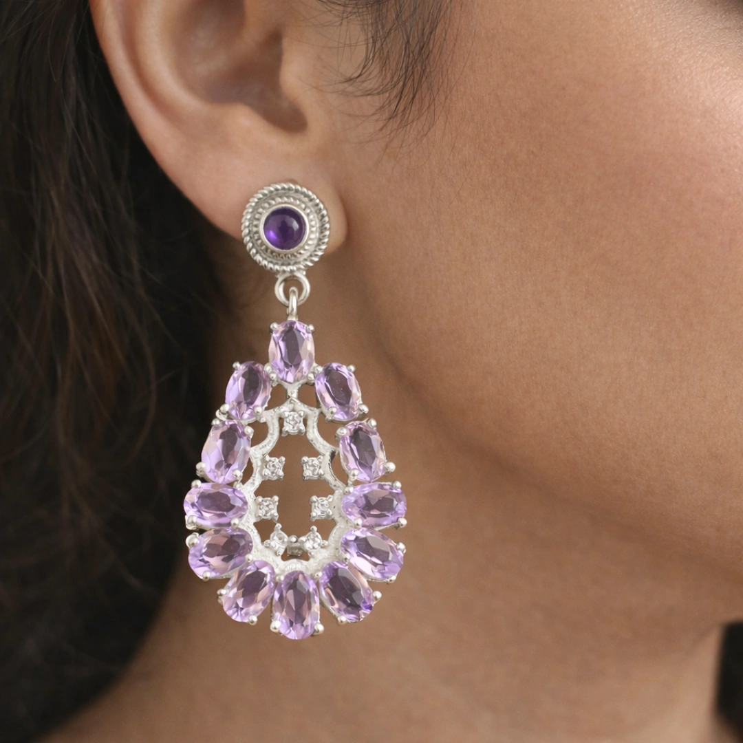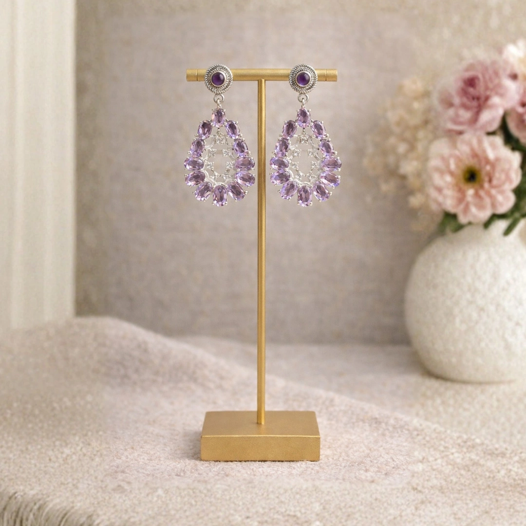 These Natural Amethyst Drop Earrings, elegantly handcrafted in 925 Sterling Silver. Featuring deep purple amethyst gemstones suspended from sparkling cubic zirconia (CZ) studs, these earrings offer the perfect balance of luxury and everyday wearability.