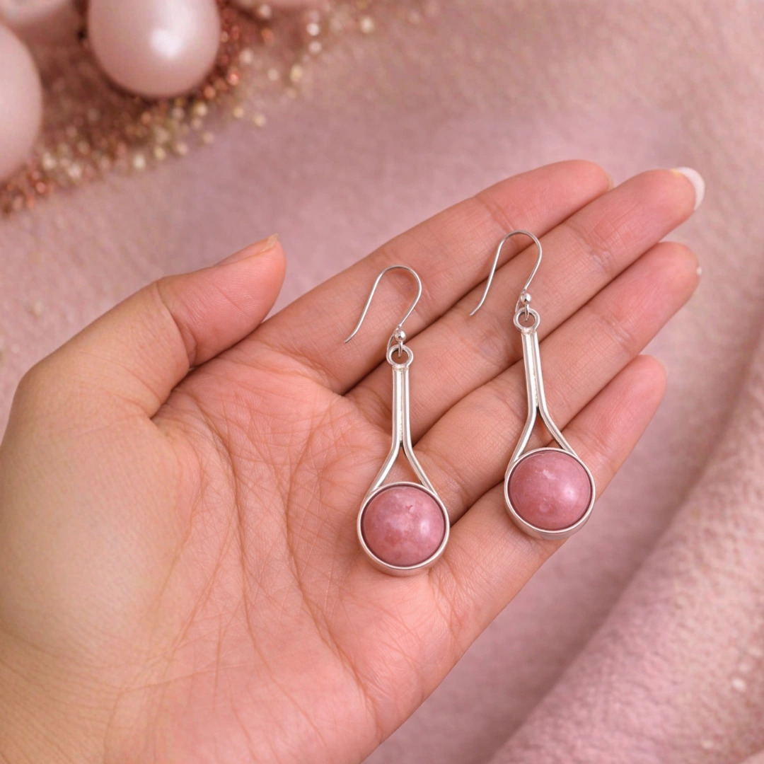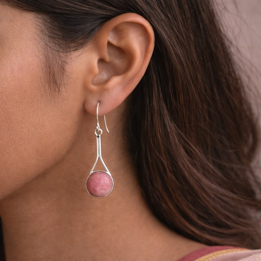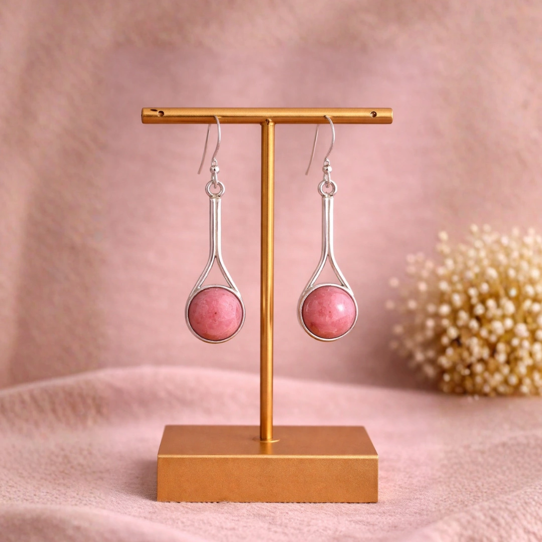 925 Sterling Silver Natural Rhodochrosite Dangle Earring | Red Stone Earring
