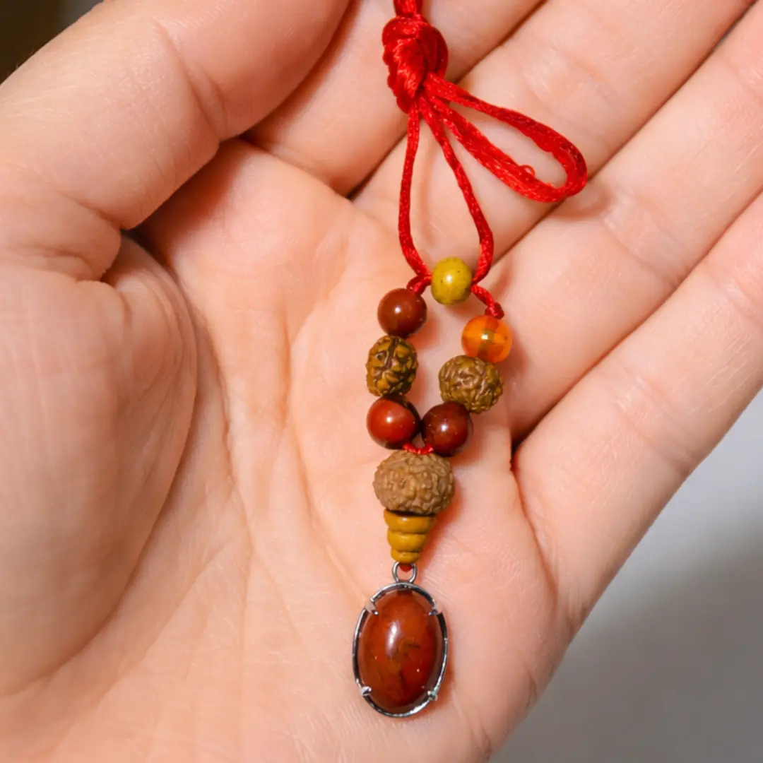 The Carnelian beads on this pendant's cord serve a specific and powerful purpose — they activate the exact quality that Mesh rashi was born to express.