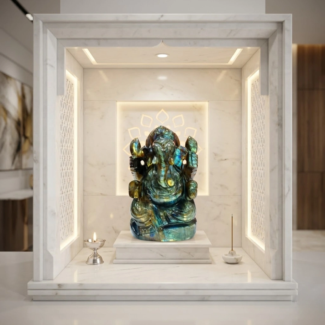 - 🏠 Home temple: North-east corner — most auspicious for Ganesha placement according to Vastu