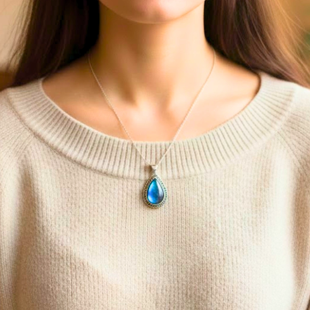 Northern Lights sky mein rare aur fleeting hoti hain. But with this labradorite pendant, you carry their frozen fire close to your heart – every single day.