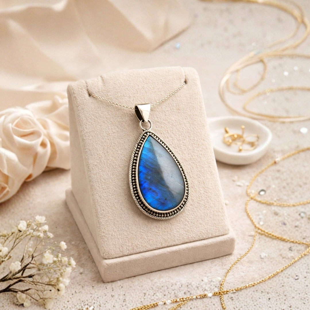 Jab pendant form mein pehna jaata hai, labradorite heart chakra ki proximity mein rehta hai. This adds: