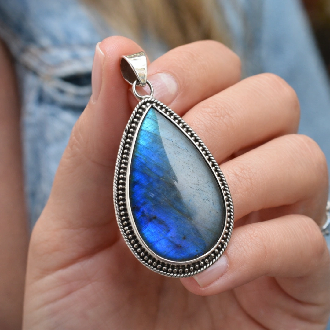 Kyunki labradorescence natural phenomenon hai, no two labradorite stones exactly same nahi hote. Aapka pendant truly one-of-a-kind hai – like your own personal piece of frozen Northern Lights.