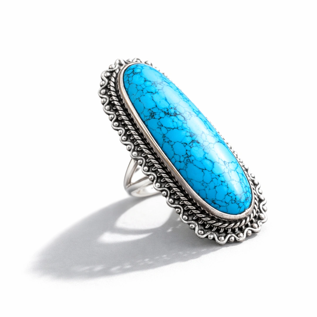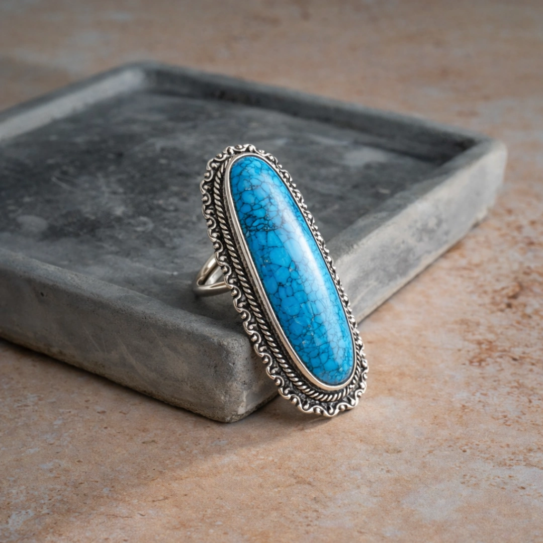 Firoza (Turquoise) duniya ke sabse purane gemstones mein se ek hai – literally 5000+ years purana. Egyptian Pharaohs isko pehnte the. Persian Kings apne crowns mein lagwate the. Native American warriors isko protection ke liye use karte the. Aur aaj, yeh same stone ek modern statement ring mein aapke saamne hai.