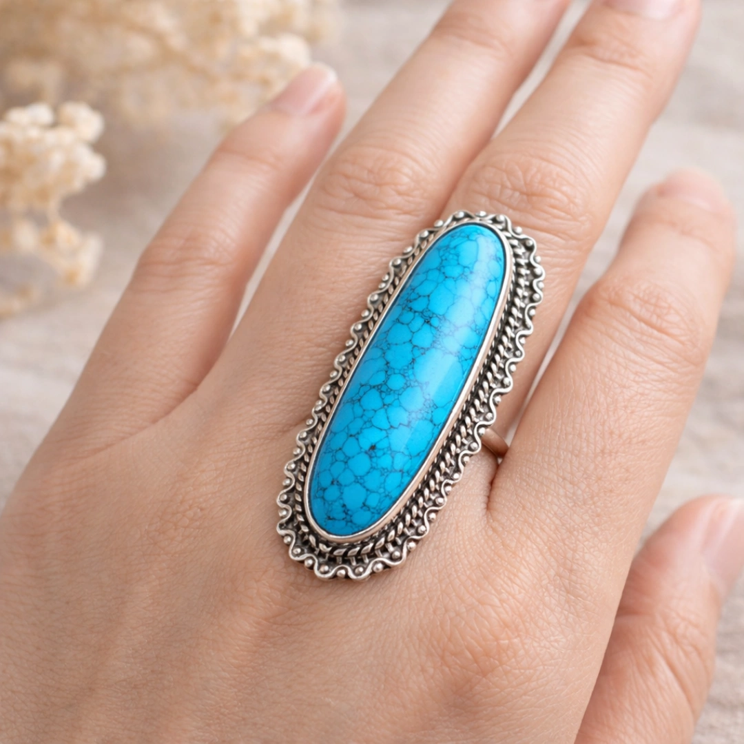 Turquoise thoda delicate stone hai (5-6 Mohs hardness). Proper care se yeh years tak beautiful rahega: