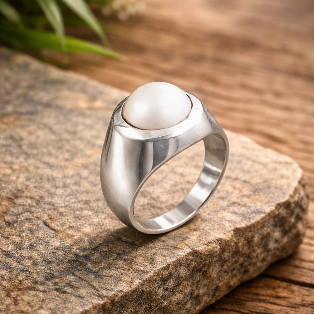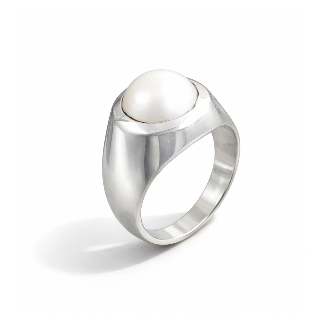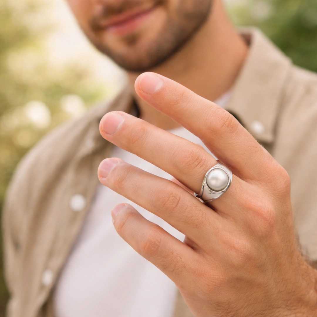 Yeh Men's Silver Pearl Signet Ring ready hai tujhe gentleman's sophistication dene ke liye. Wisdom chahiye? Calm chahiye? Refined style chahiye? Yeh ring sab deliver karti hai classic masculine package mein.