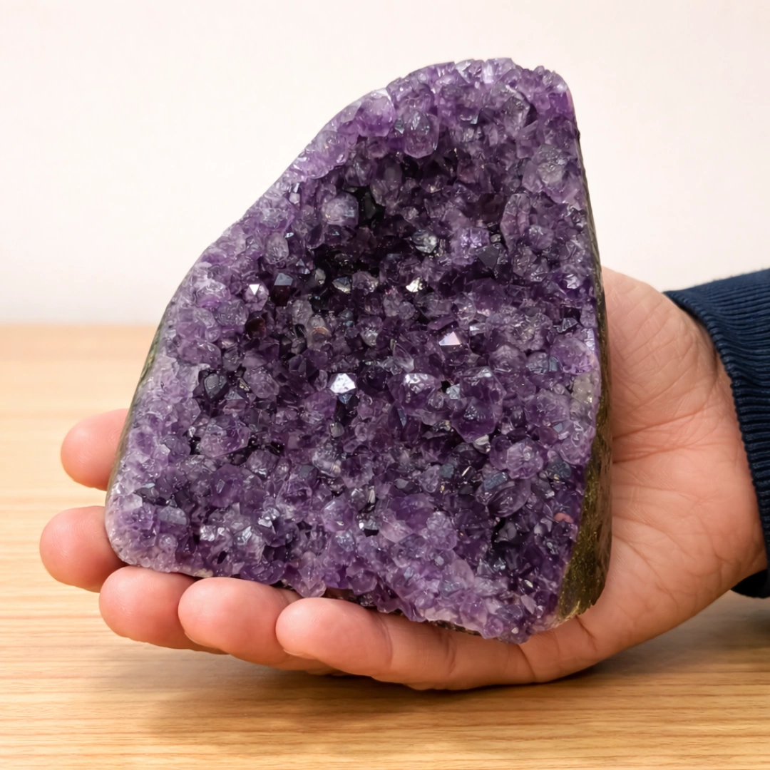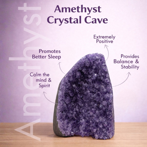 Amethyst ka purple color spirituality ka symbol hai — Crown Chakra aur Third Eye Chakra se connected. Yeh Cave form extra powerful hai kyunki crystals andar ki taraf point karte hain, energy ko concentrate aur amplify karte hain.