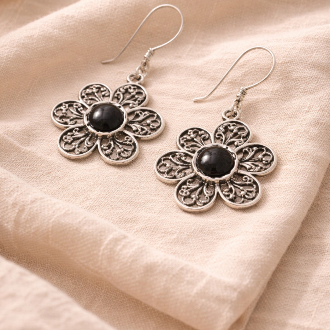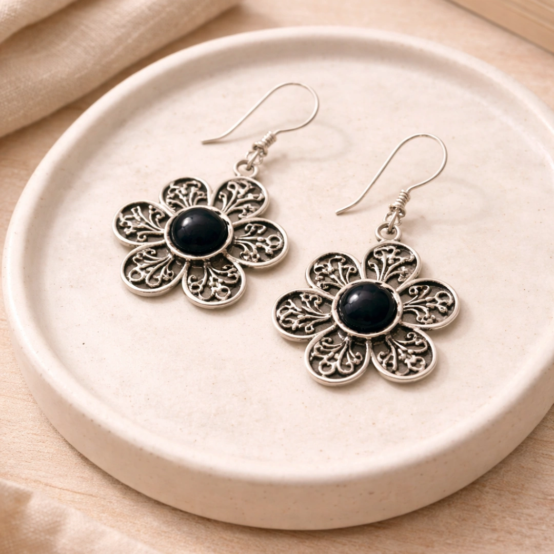 Yahi feeling thi jab humne Black Onyx Filigree Earrings design ki.