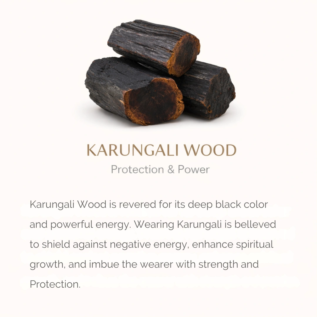 1. Negative Energy Se Protection Karungali wood naturally absorptive hoti hai — negative vibrations, jealousy, buri nazar — yeh malai unhe absorb karke aapke aura ko shield karti hai. Yeh "magic armor" nahi hai — yeh ek grounding layer hai jo aapko unnecessarily affected hone se bachati hai.