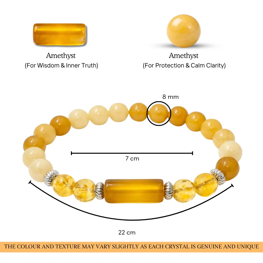 At the sides of this bracelet sits yellow aventurine — and for Meen rashi, its presence adds the forward-moving, opportunity-opening energy that the dreamer needs to bring visions into reality.