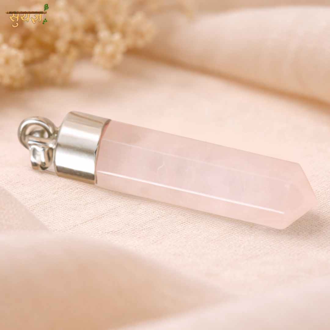 This beautiful Rose Quartz Pensil Shape Locket represents love, harmony, and emotional healing. Designed with a smooth, polished crystal point and finished with a premium silver-toned cap, it offers a soft, elegant look that suits everyday wear as well as spiritual use. The gentle pink hue adds a calming and graceful touch.