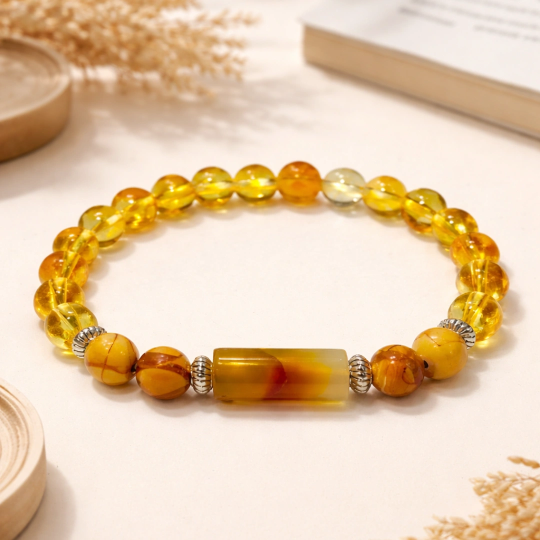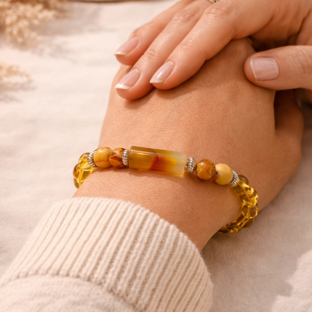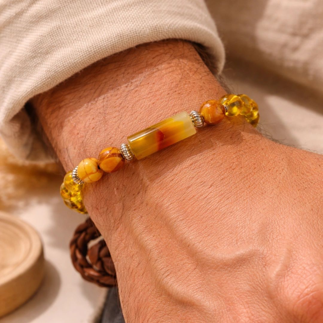 Yeh bracelet tera daily Jupiter charger hai. Subah pehn, din bhar Jupiter ki energy tere saath. Decisions wise honge. Luck favour karega. Wealth expand hogi. Knowledge deep hogi. Relationships meaningful hongi.