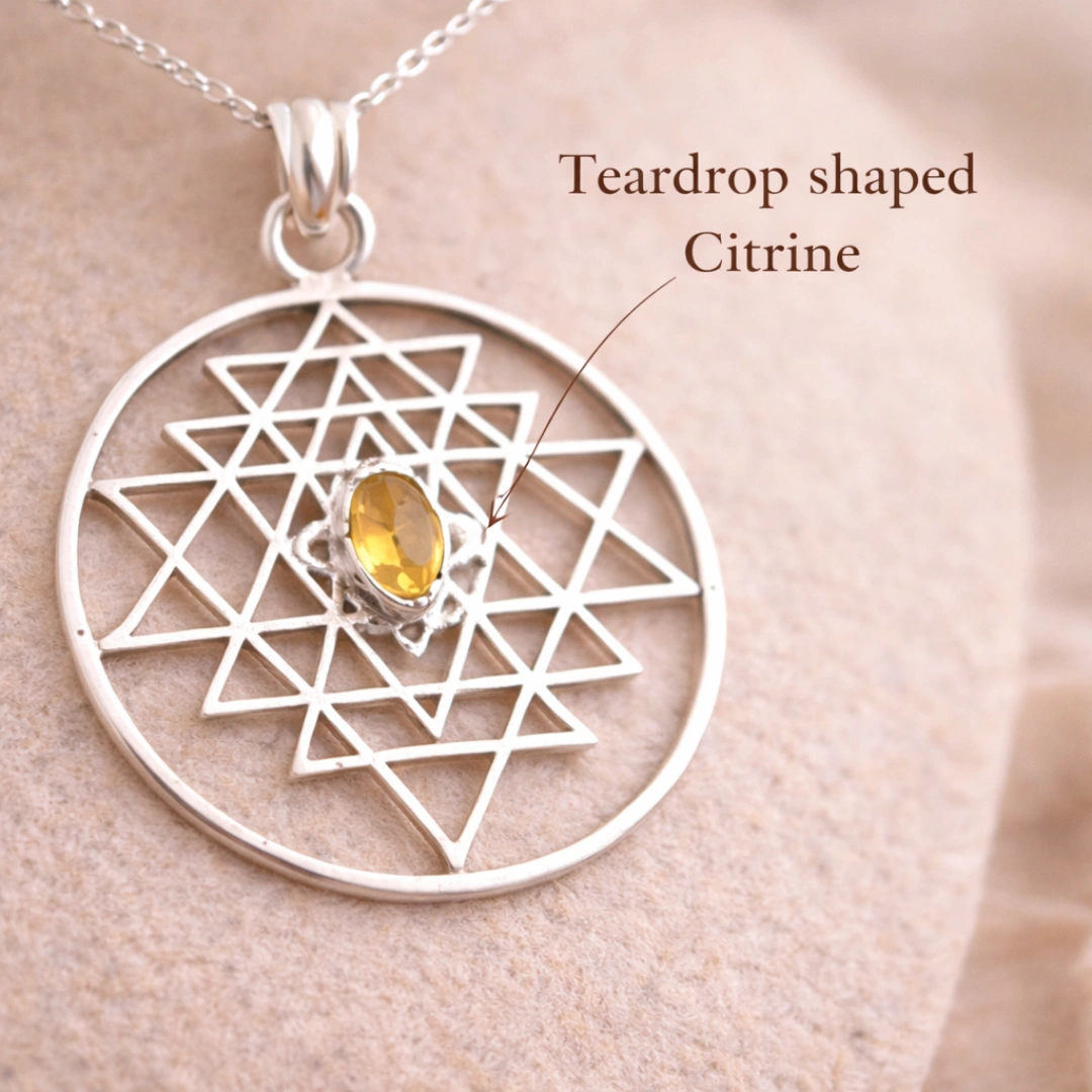 Pendant form mein Citrine directly heart chakra ke paas rehta hai — abundance WITH love.