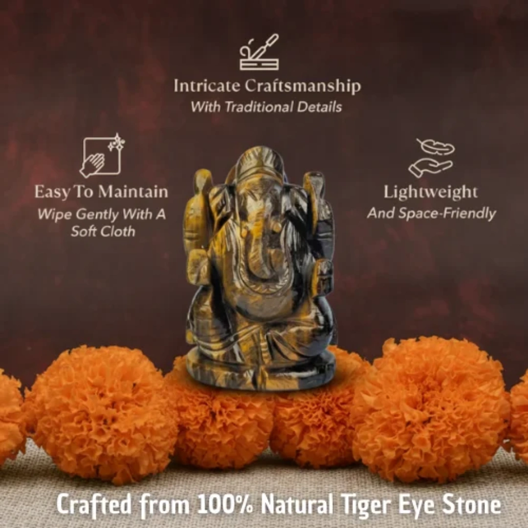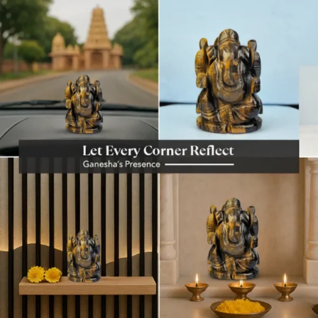 This murti is different. Because Tiger Eye is not a decorative stone. It is one of the most intentional materials you could choose to carve Ganesha from.