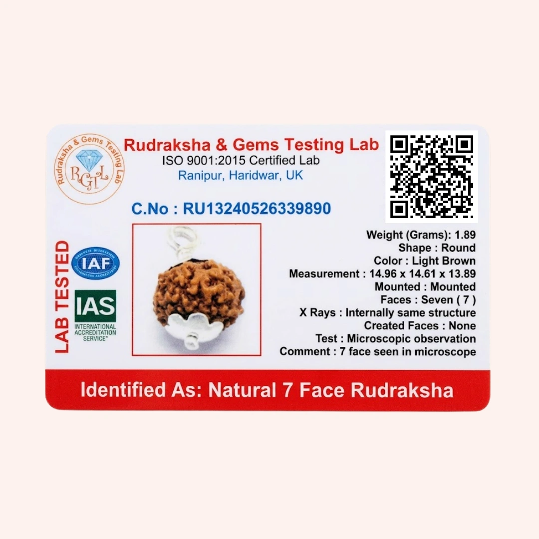 Nepal's high-altitude Himalayan forests produce rudraksha with greater natural density and energy than lower-altitude origins. Every 7 Mukhi in this listing is individually inspected, all seven faces verified, and govt lab certified. Not batch tested. Authentic Nepal origin — the standard all classical texts refer to.