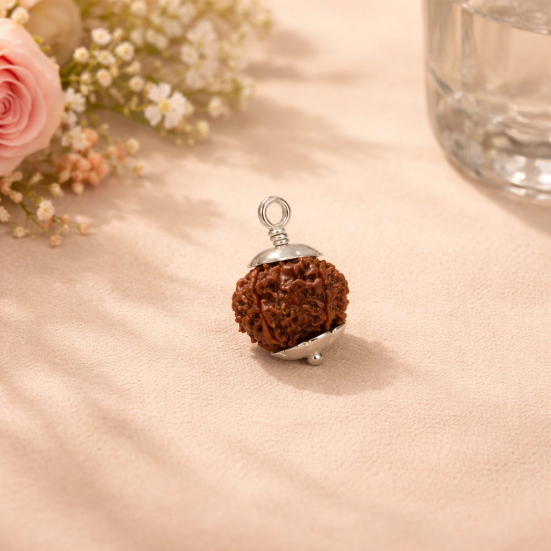 Silver is the specific metal that traditional texts recommend for mounting rudraksha — not gold, not copper. Silver for calm. Silver for sustained clarity. Silver for the steady energy that makes Ganesha's obstacle-clearing work consistently over time.