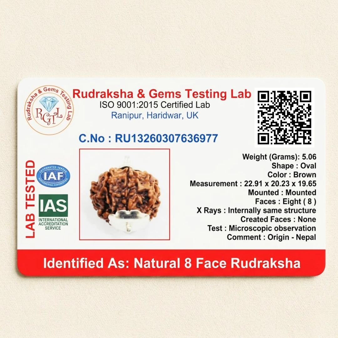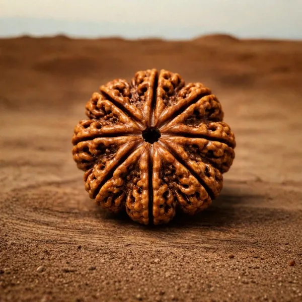 The Premium 8 Mukhi's effects are often noticed in the absence of things — situations that usually go wrong, don't. Obstacles that usually appear, don't materialise. Progress that was stuck starts moving.