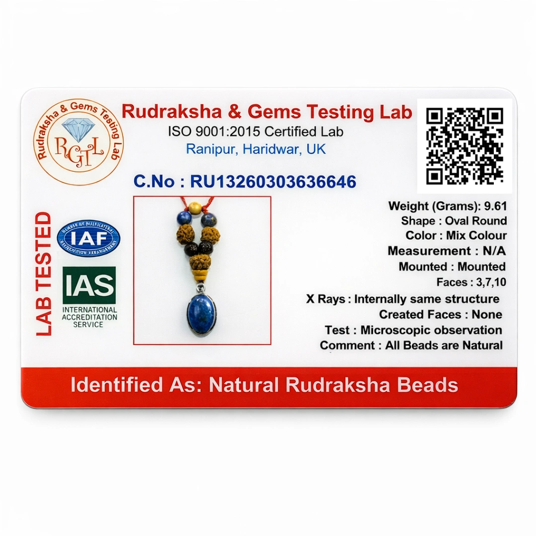 At Suyagya: Every Turquoise oval individually verified — genuine stone, natural matrix, real quality. Every Lapis Lazuli bead authenticated — real navy blue with natural pyrite, not dyed imitation. Every Black Amethyst bead confirmed genuine. Every Rudraksha bead authenticated — genuine 3, 7, and 10 mukhi lines confirmed. Government lab certified for the complete pendant. Certificate on request, always. Every Aquarius Kumbh Rashi Pendant cleansed and Saturn-activated before dispatch — sound cleansing, Saturday Shanivaar moonlight setting, Om Shanaischaraya Namaha activation.