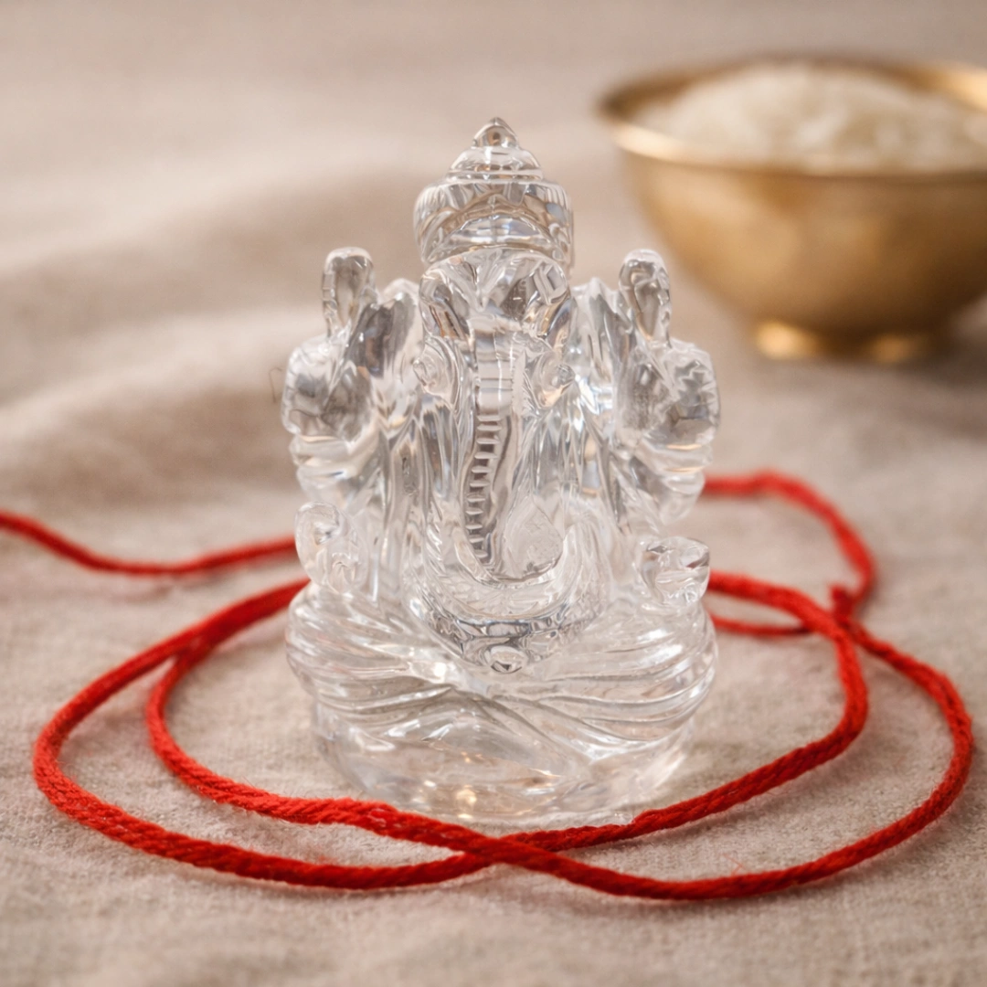 This is why crystal Ganesha idols have been used in homes and places of business for centuries. Not just as symbols of devotion — as active energy tools. A clear quartz Ganesha in the entrance of a home clears the energy of everything that enters. In an office, it amplifies the clarity of decisions made in that space. In a home temple, it amplifies the energy of every prayer, every intention, every meditation offered in that corner.