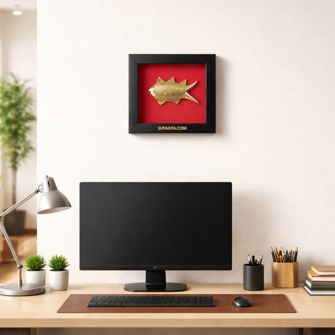 Step 1: Clean the brass fish gently with a soft cloth. Step 2: Wash it lightly with clean water mixed with a pinch of turmeric (haldi) — turmeric purifies and activates the golden Jupiter energy. Step 3: Pat dry completely. Step 4: Light a ghee diya and an incense stick (agarbatti) near the fish. Step 5: Say a simple intention — "This Dhan Vridhi Fish activates wealth, prosperity, and protection for my home/office/business and family. Om Shreem Mahalakshmyai Namah." Say this 3 times. Step 6: Place the fish in your chosen location — Southeast corner, office desk, cash counter, etc. Step 7: Fish mouth facing INWARD (toward center of space, NOT toward the door).