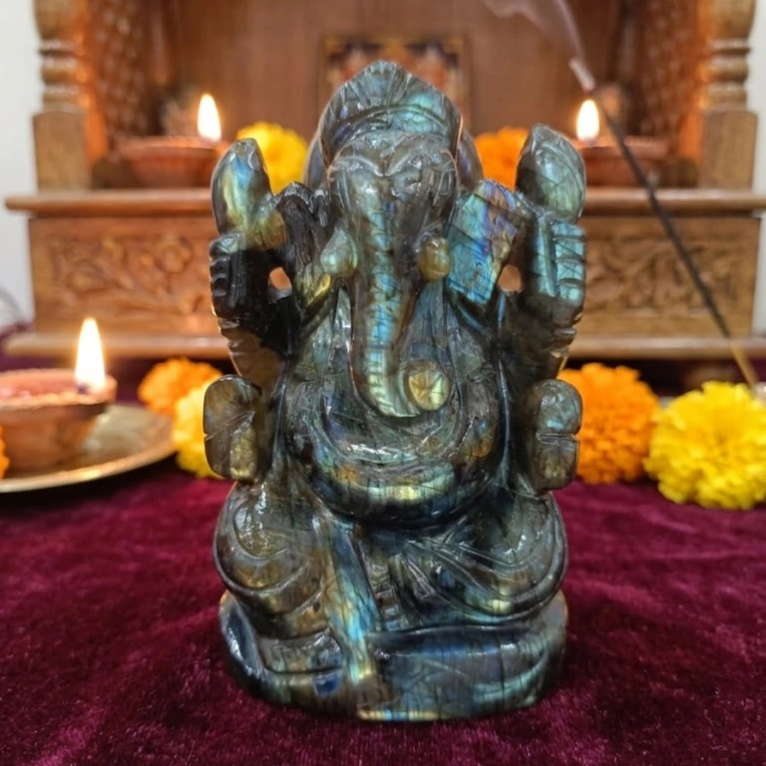- 📚 Study room: For students — Ganesha's wisdom energy combined with labradorite's clarity