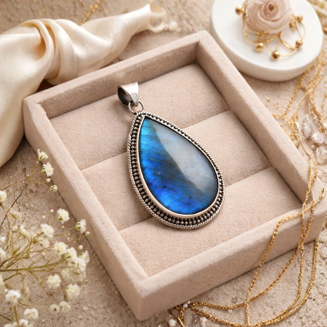Kyunki labradorescence natural phenomenon hai, no two labradorite stones exactly same nahi hote. Aapka pendant truly one-of-a-kind hai – like your own personal piece of frozen Northern Lights.