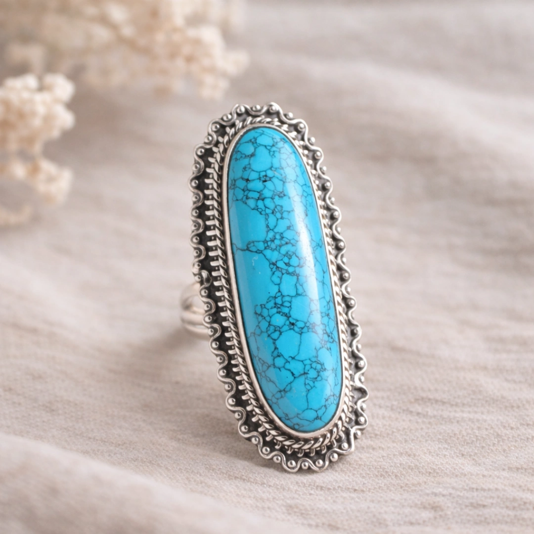Firoza (Turquoise) duniya ke sabse purane gemstones mein se ek hai – literally 5000+ years purana. Egyptian Pharaohs isko pehnte the. Persian Kings apne crowns mein lagwate the. Native American warriors isko protection ke liye use karte the. Aur aaj, yeh same stone ek modern statement ring mein aapke saamne hai.