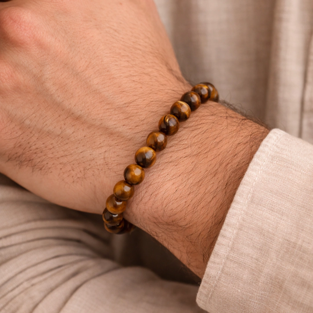 This Natural Tiger Eye Stone Bracelet is a powerful piece featuring authentic tiger eye gemstone with its signature golden-brown bands and chatoyancy (cat's eye effect). Tiger Eye has been revered for centuries as the ultimate stone of confidence, protection, and grounded action.