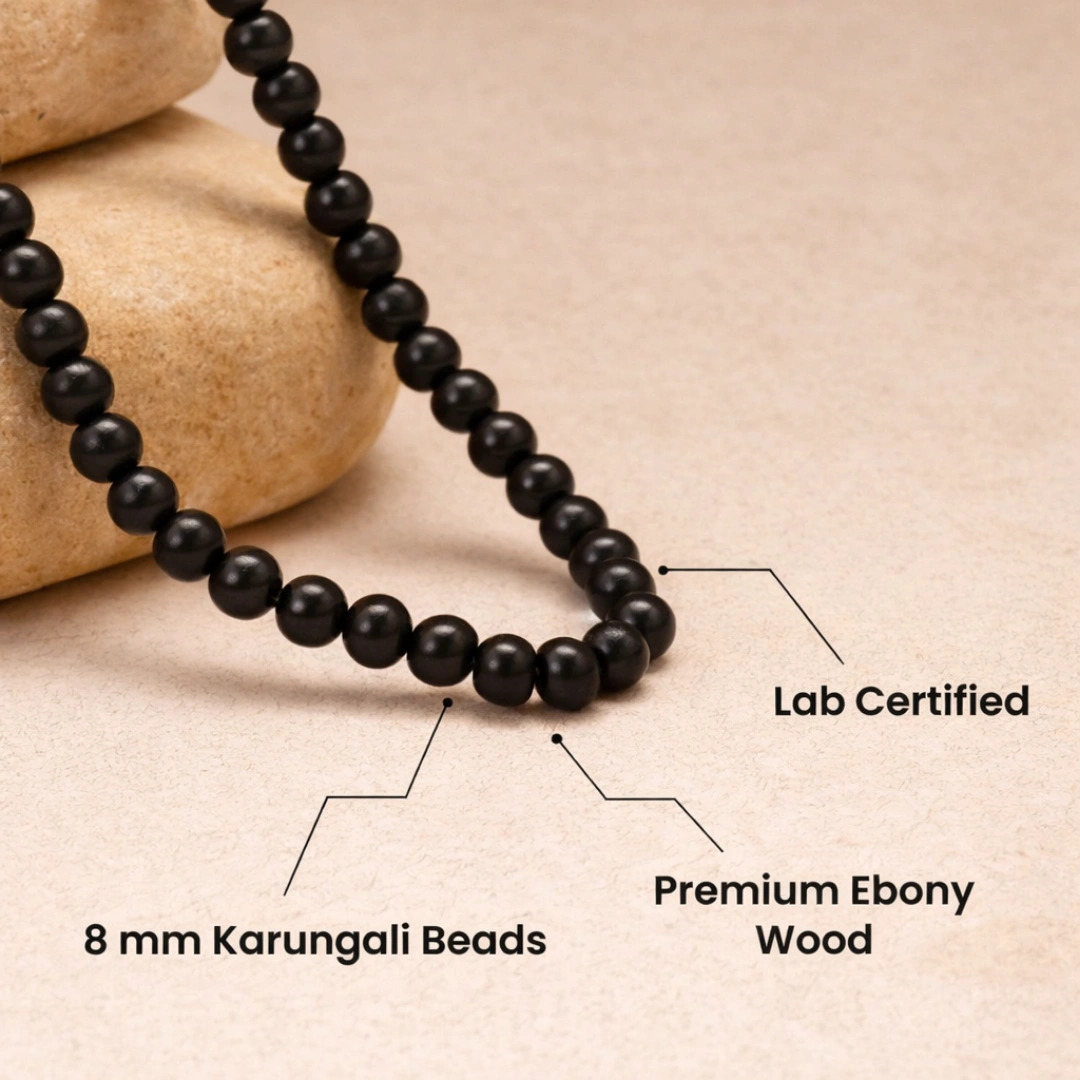 Kyunki bahut sar fake Karungali malai bik rahi hain — dyed plastic beads ya cheap wood jo sirf baahir se kali lagti hai.