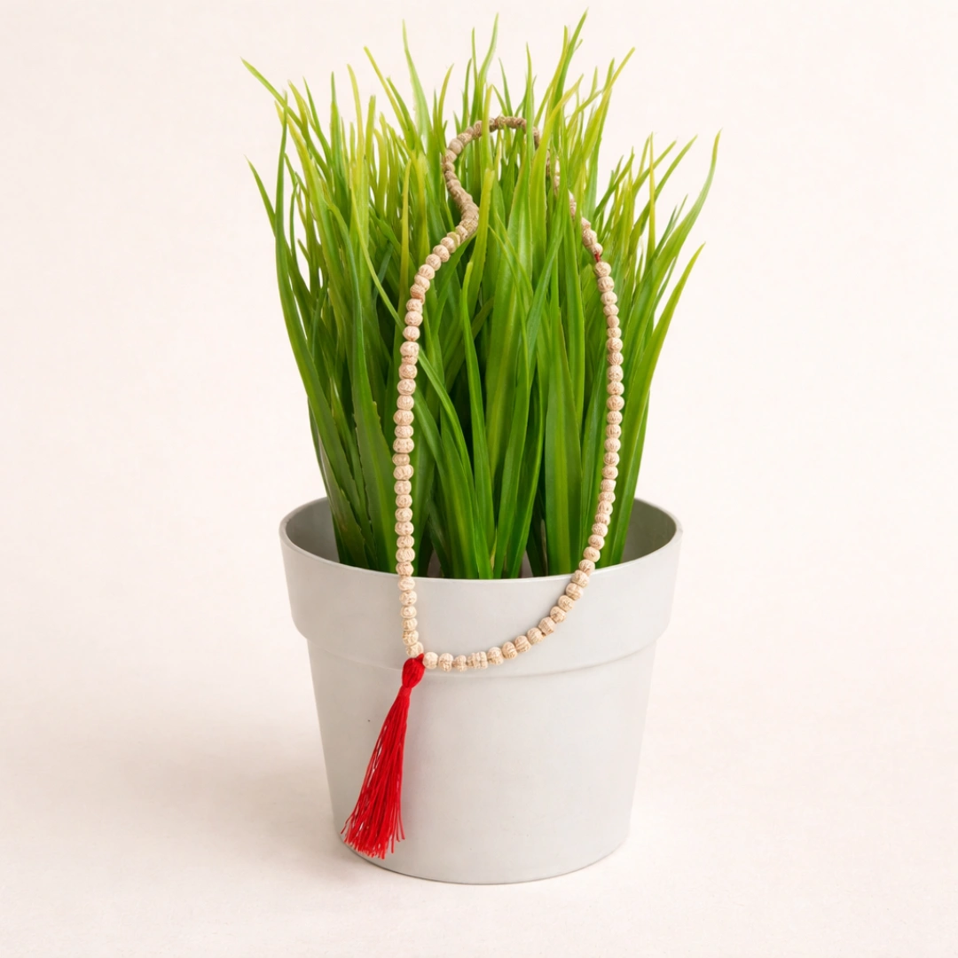 Step 1 – Bead Selection Thakur ji ke liye mala mein extra care li jaati hai. Har bead Nepal origin, genuine, aur visually sundar honi chahiye – kyunki yeh Bhagwan ki hai.