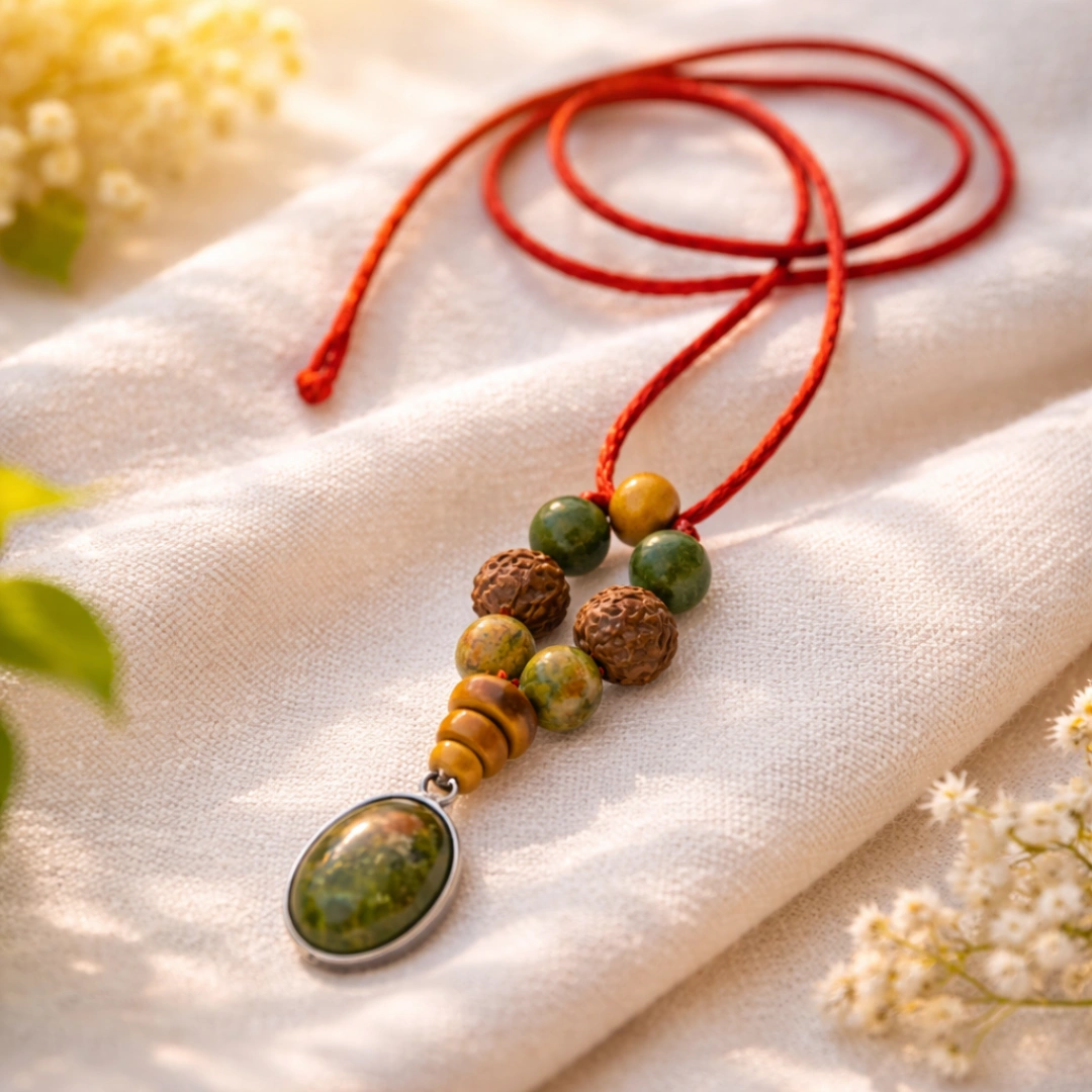 Serpentine is frequently mislabeled — similar-looking stones sold as serpentine, or low-quality serpentine without genuine energetic properties. At Suyagya, every Serpentine piece is individually selected and verified. Every Rudraksha bead authenticated — genuine 2, 8, and 9 mukhi lines confirmed. Government lab certified for the complete pendant. Certificate on request, always — because Kanya rashi will ask, and the answer must be complete. Every Virgo Kanya Rashi Pendant cleansed and Mercury-activated before dispatch — sound cleansing, Wednesday Budhvar setting, Om Budhaya Namaha activation.